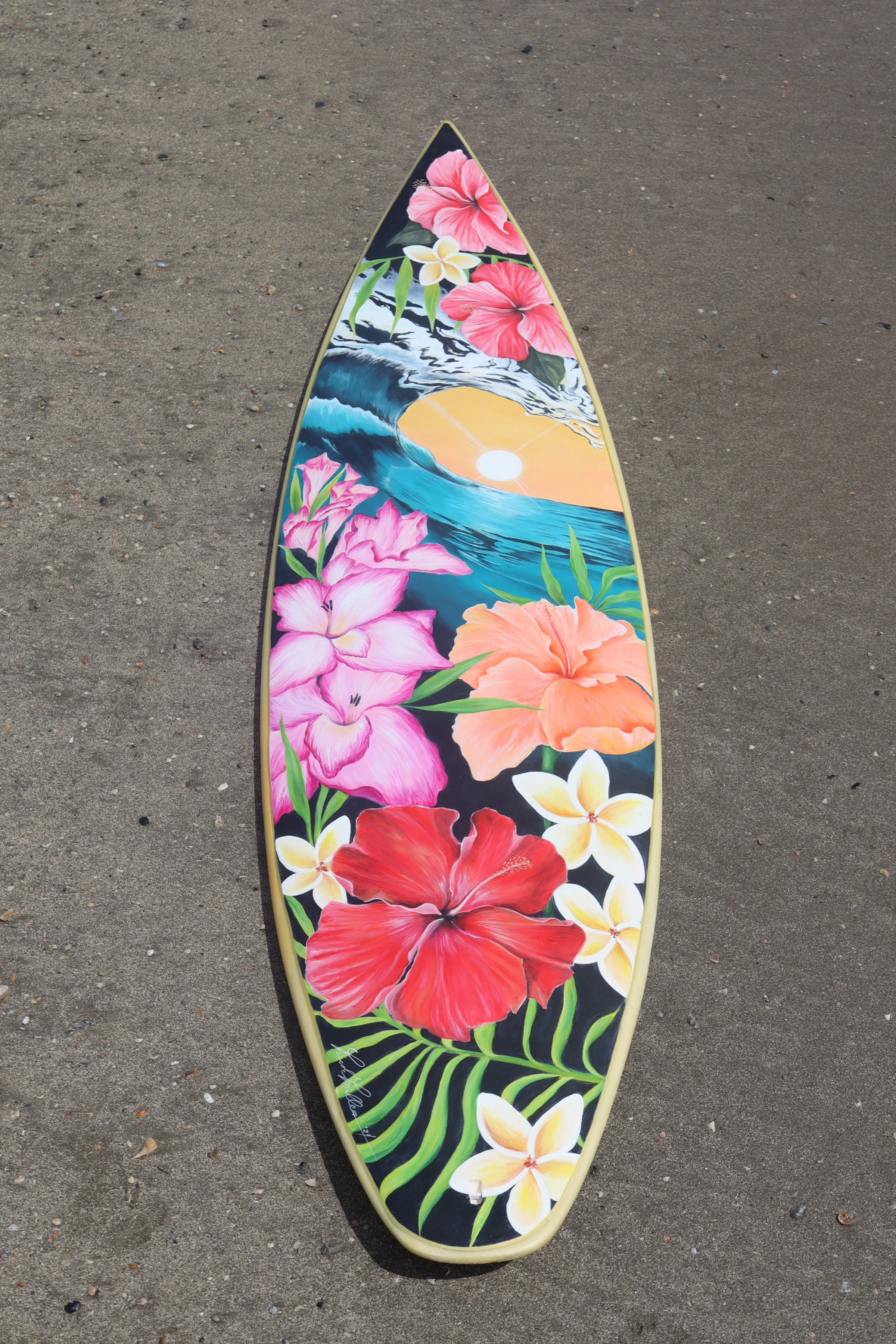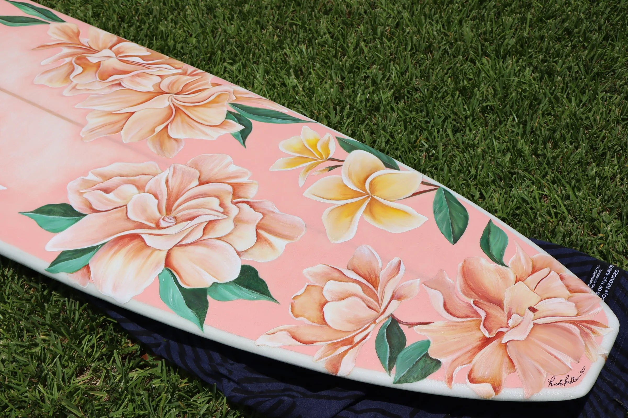 One of the first questions I always receive when discussing a commission is “do you provide the board?” My answer is always, I can do it either way! I can (and usually do) provide a board, or I can paint one that you have if you prefer. If you would like to be able to surf the board, I ask that you provide the board or be prepared to commission a shaper of my choice as well.